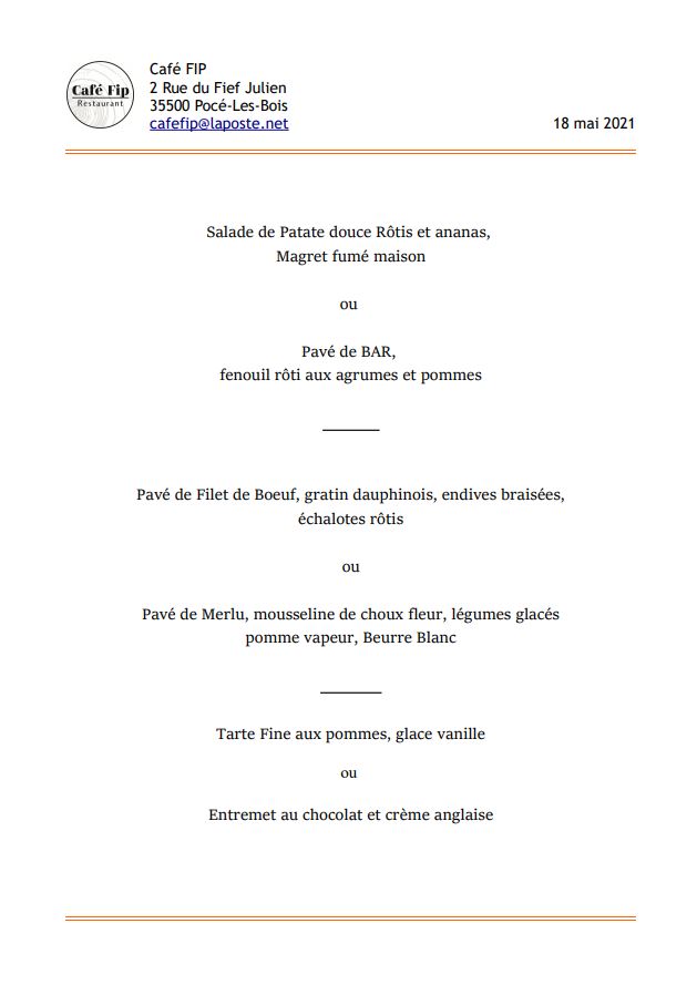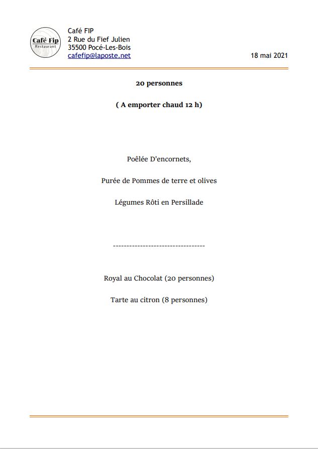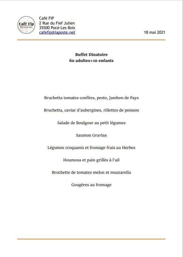 Vous pourrez trouver ci dessous quelques exemples de menus que nous avons déjà livré