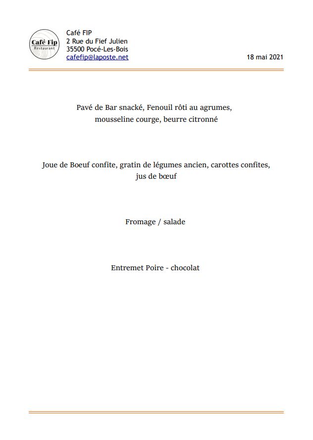 n’hésitez pas à passer nous voir ou téléphoner pour que nous établissions un menu qui vous ressemble.